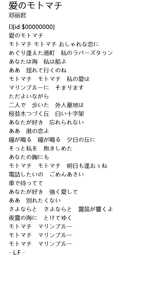 | [00:16.916] | モトマチ モトマチ おしゃれな恋に |
