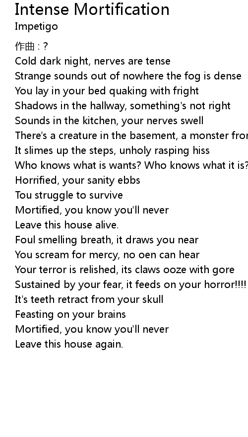 | Song | Intense Mortification |
