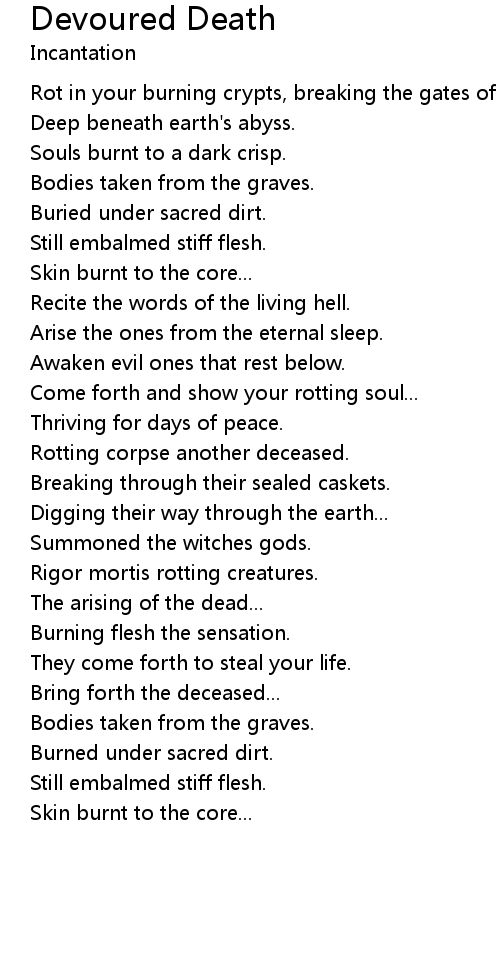 Rot in your burning crypts, breaking the gates of life. |