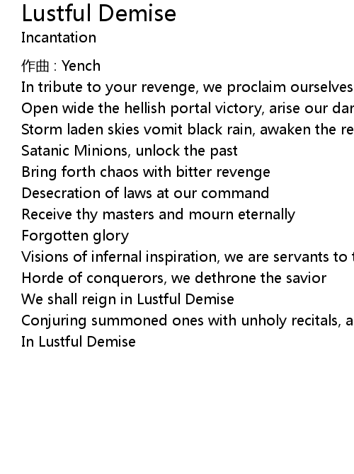 | Open wide the hellish portal victory, arise our darkest revenge | |