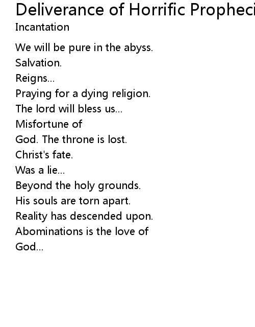 | Song | Deliverance of Horrific Prophecies |