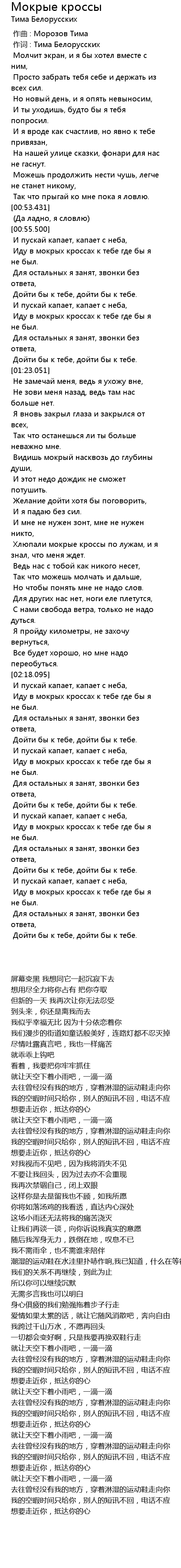 [03:02.358] Иду в мокрых кроссах к тебе где бы я не был.