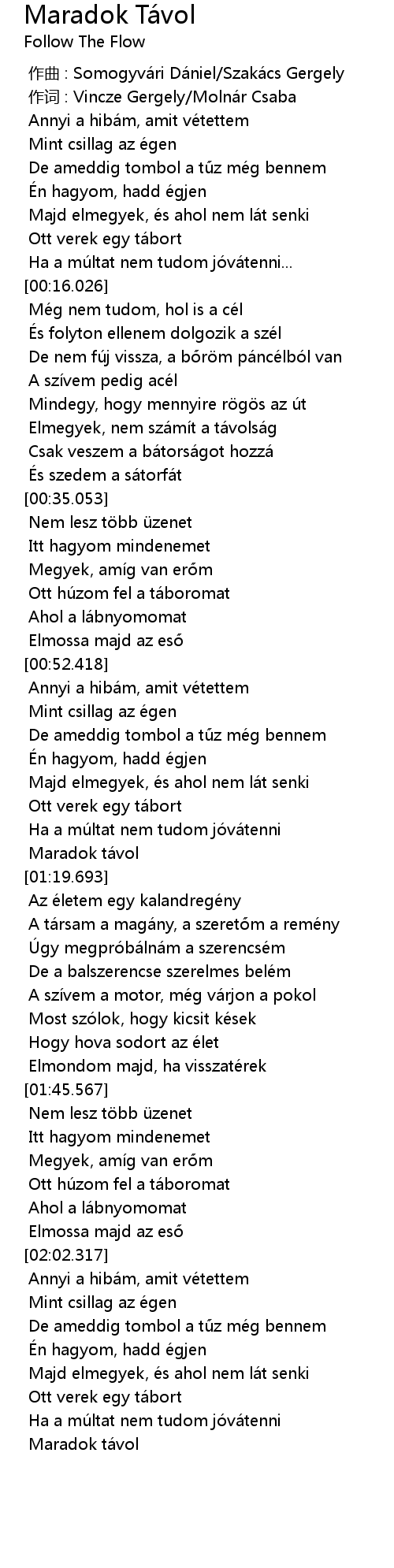 | [00:00.005] | 作词 : Vincze Gergely/Molnár Csaba |