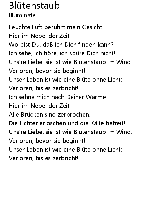 | Uns' re Liebe, sie ist wie Blü tenstaub im Wind: | |