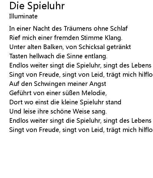 | Endlos weiter singt die Spieluhr, singt des Lebens Sinfonie | |