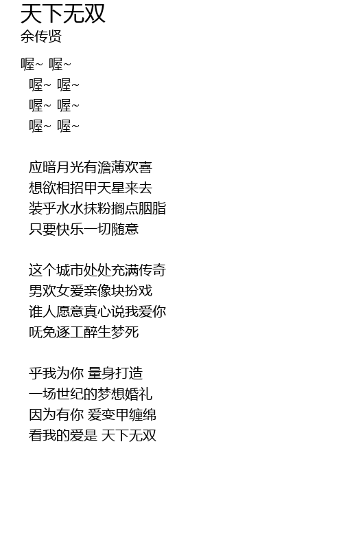 | kàn wǒ de ài shì tiān xià wú shuāng |