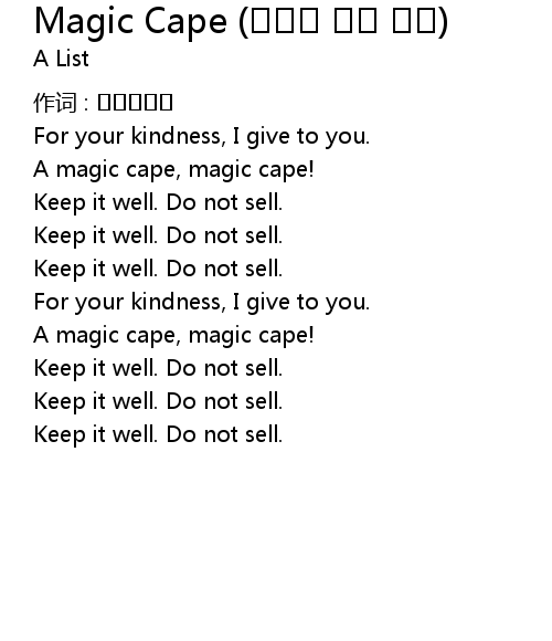 | Song | Magic Cape (춤추는 여섯 공주) |