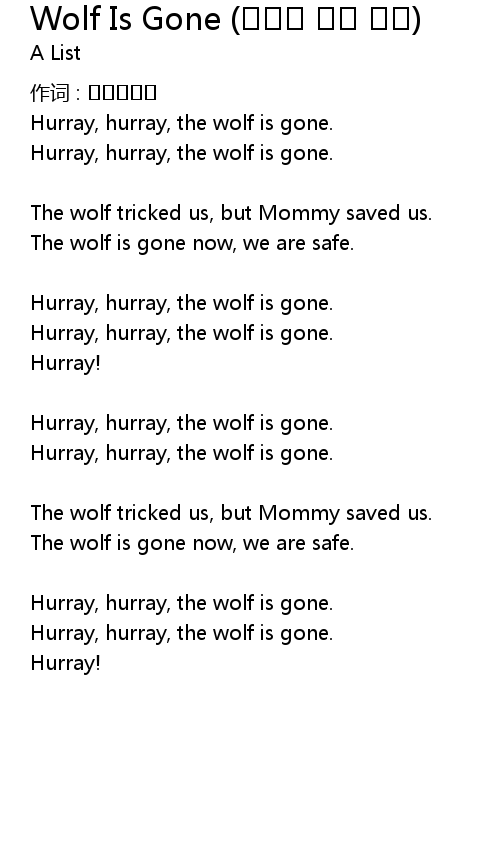 | Hurray, hurray, the wolf is gone. | |