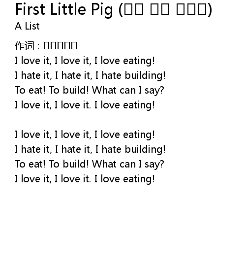 | Song | First Little Pig (아기 돼지 삼형제) |