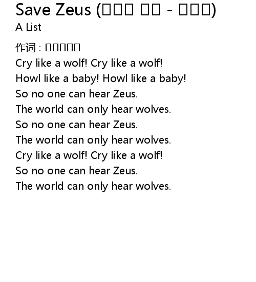 | Song | Save Zeus (그리스 신화 - 제우스) |