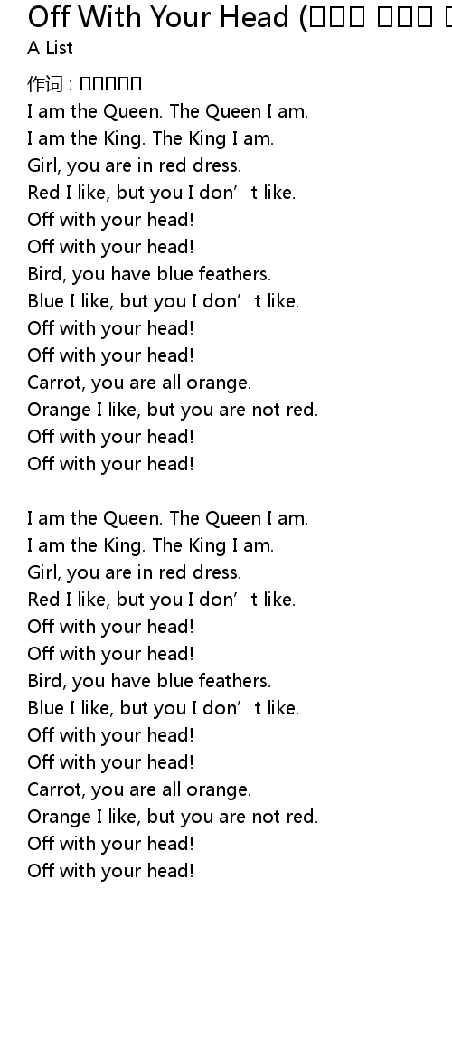| Song | Off With Your Head (이상한 나라의 앨리스) |
