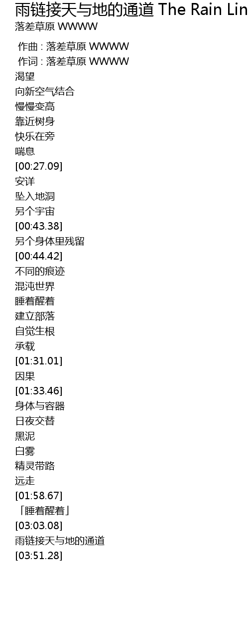| [03:47.39] | 雨链接天与地的通道 |