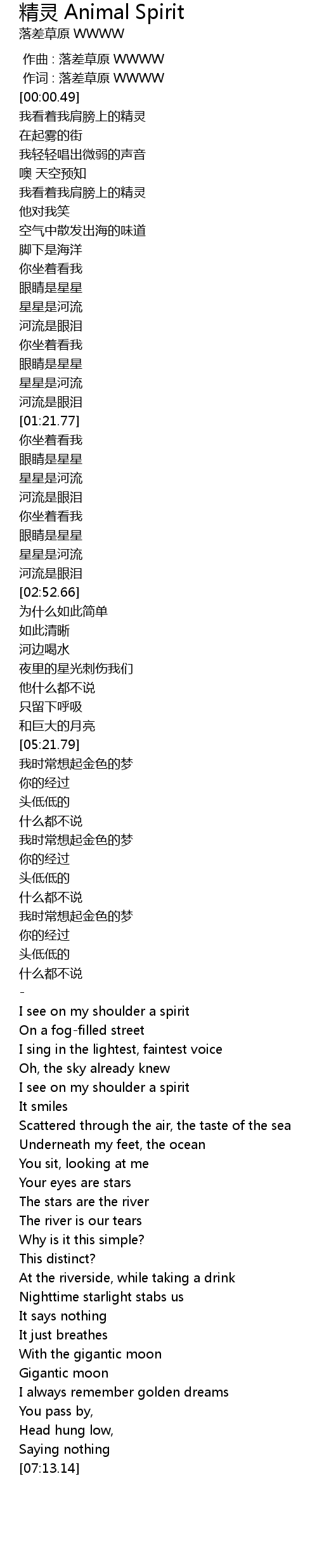 | [00:00.016] | 作词 : 落差草原 WWWW |