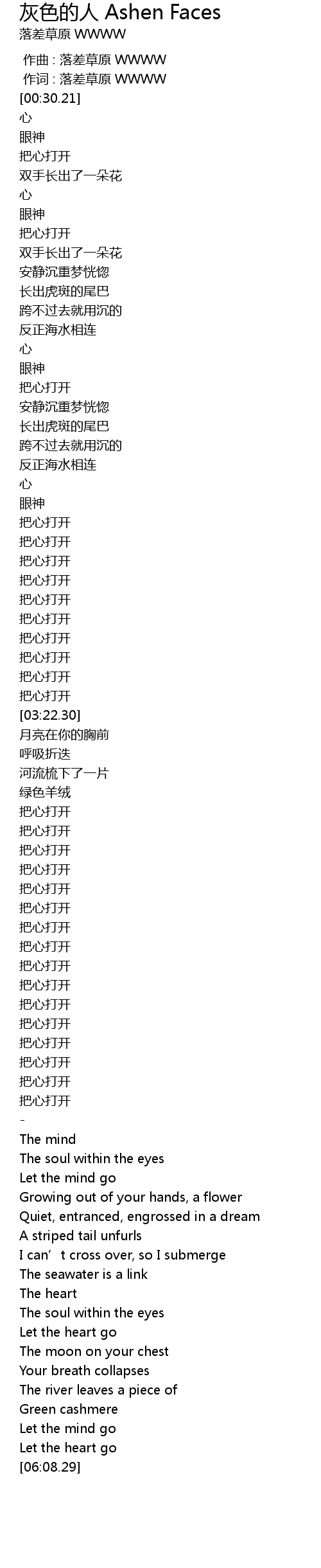 | [04:20.30] | bǎ xīn dǎ kāi |