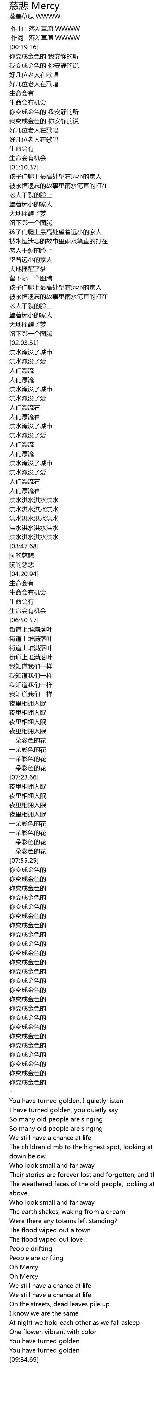 | [03:20.42] | hóng shuǐ hóng shuǐ hóng shuǐ hóng shuǐ |