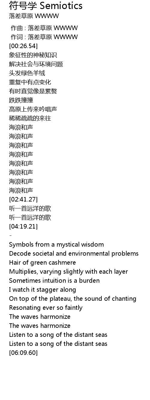 | [00:01.000] | zuo ci : luo cha cao yuan WWWW |