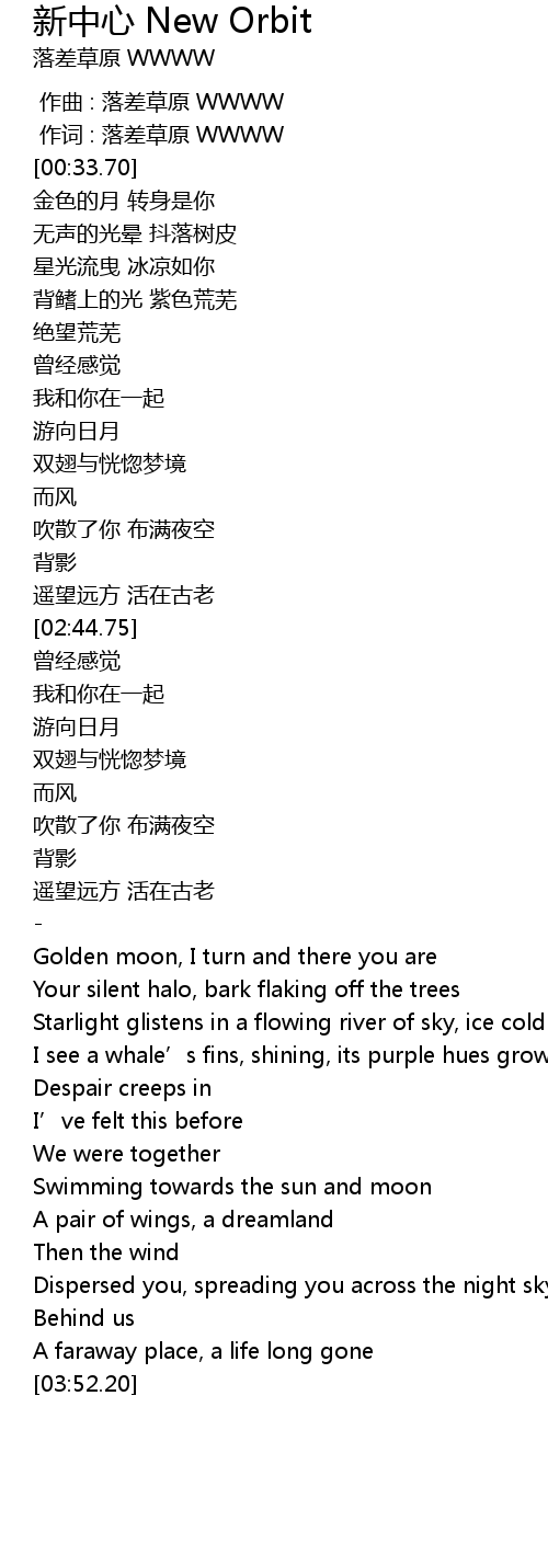 | [00:01.000] | 作词 : 落差草原 WWWW |