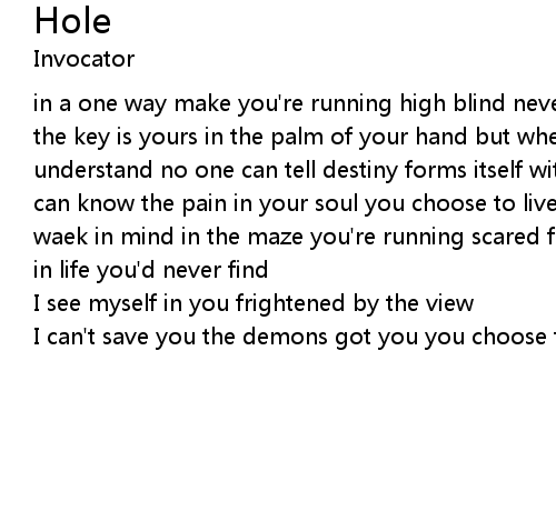 in a one way make you're running high blind never stopped to reality wonder why the key is yours in the palm of your hand but where would you go if you never understand no one can tell destiny forms itself with or without your help no one can know the pain in your soul you choose to live down that hole weak in spirit waek in mind in the maze you're running scared forever blind to all the things in life you'd never find |