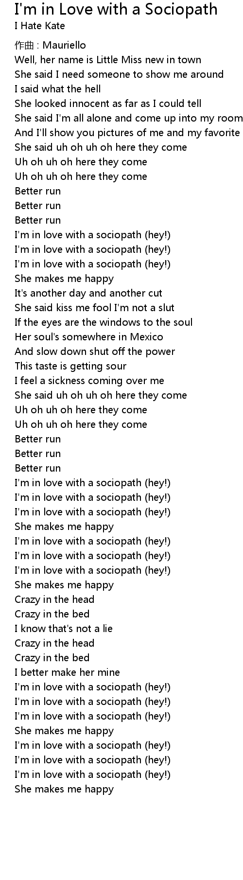 | I'm in love with a sociopath (hey!) | |