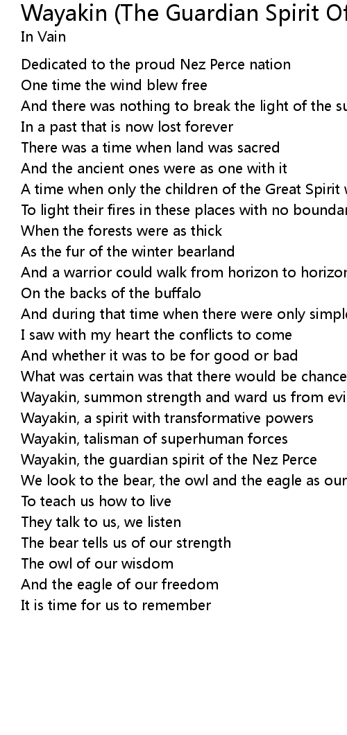 | Wayakin, the guardian spirit of the Nez Perce | |