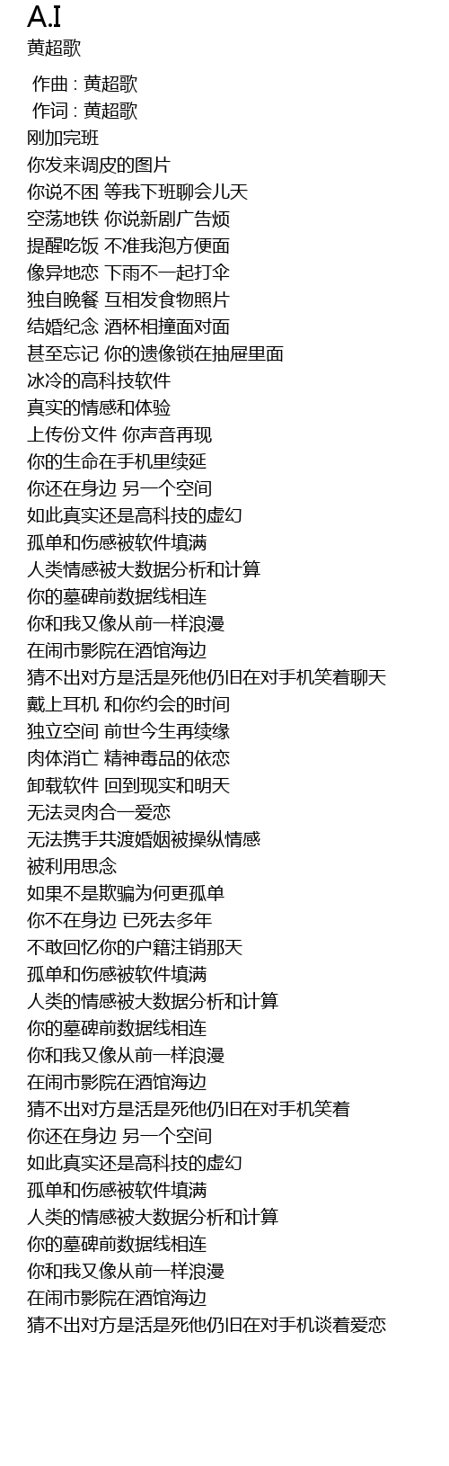 | [00:01.000] | 作词 : 黄超歌 |