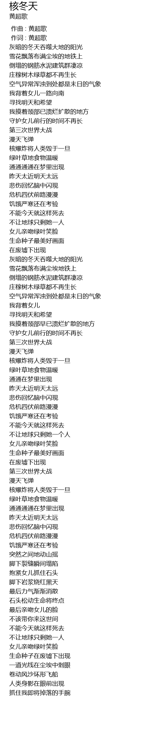 | [00:01.000] | 作词 : 黄超歌 |