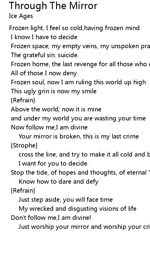 | Frozen space; my empty veins, my unspoken prayers. | |