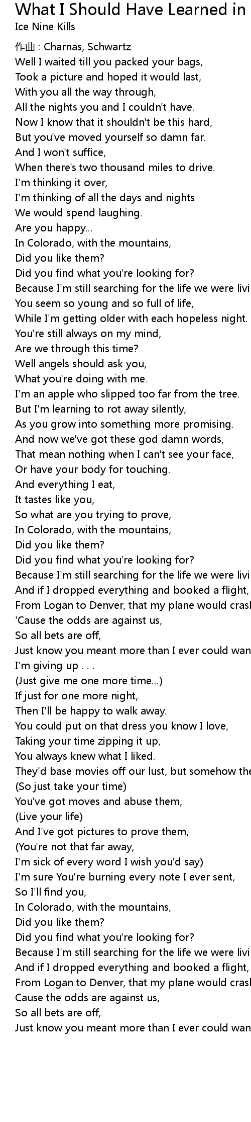 | Song | What I Should Have Learned in Study Hall |