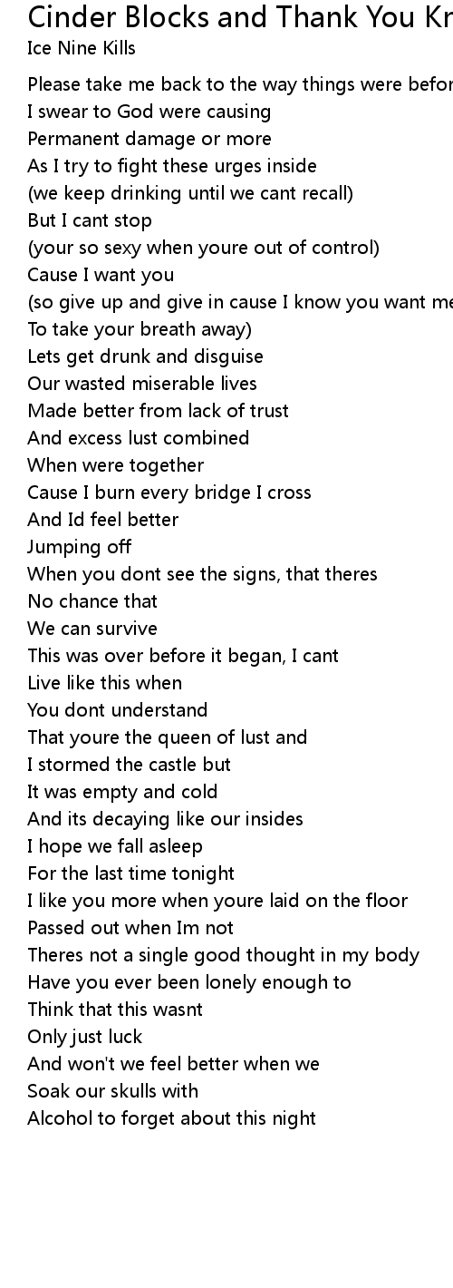 Cinder Blocks and Thank You Knots Lyrics