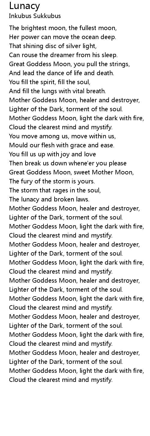 Great Goddess Moon, sweet Mother Moon, |