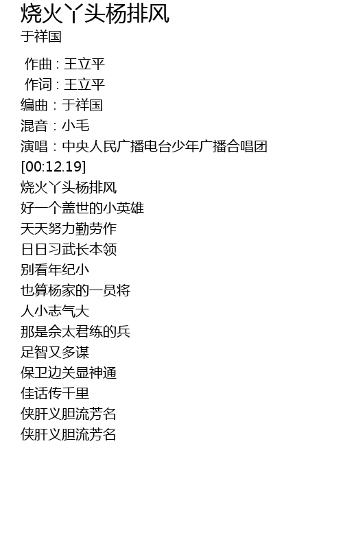 | [00:05.12] | 编曲:于祥国 |