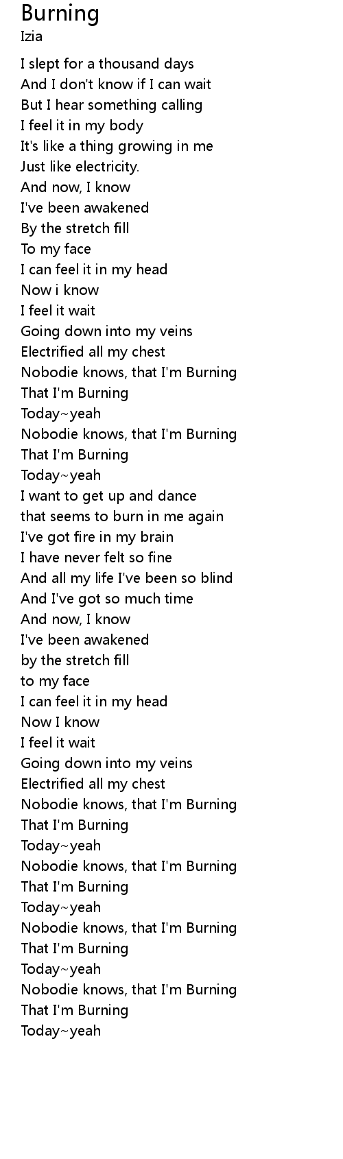 | Nobodie knows, that I'm Burning | |