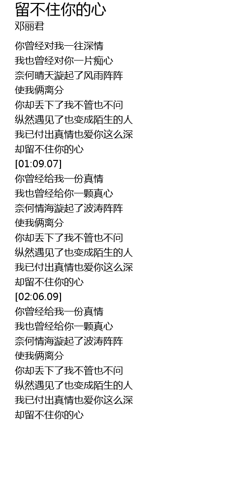 | [01:59.92] | què liú bú zhù nǐ de xīn |