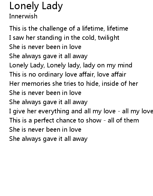 | Lonely Lady, Lonely lady, lady on my mind | |