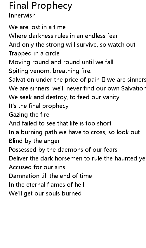 | It's the final prophecy | |