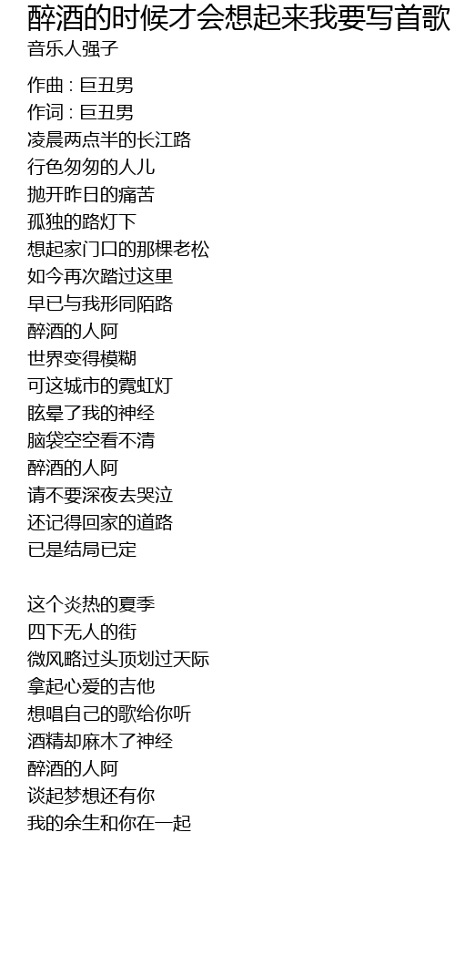 | Song | 醉酒的时候才会想起来我要写首歌(demo) |