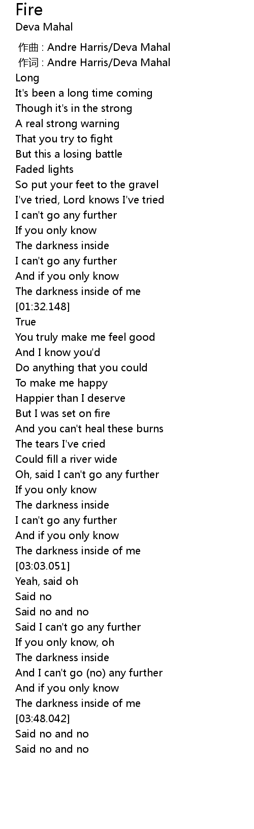 | [00:01.000] | zuò cí : Andre Harris Deva Mahal |