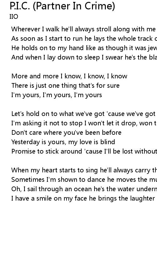 | Promise to stick around 'cause I'll be lost without my partner in c | |