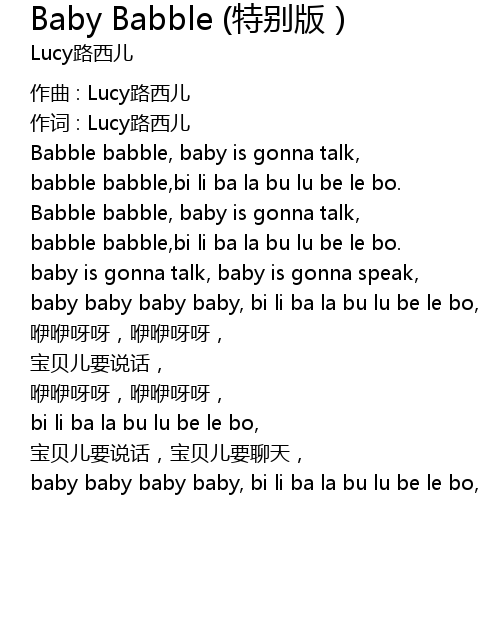 | baby baby baby baby, bi li ba la bu lu be le bo, |