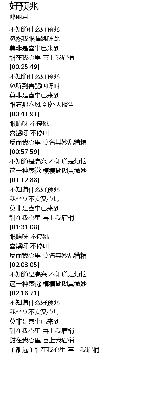 | [02:39.92] | (渐远)甜在我心里 喜上我眉梢 |