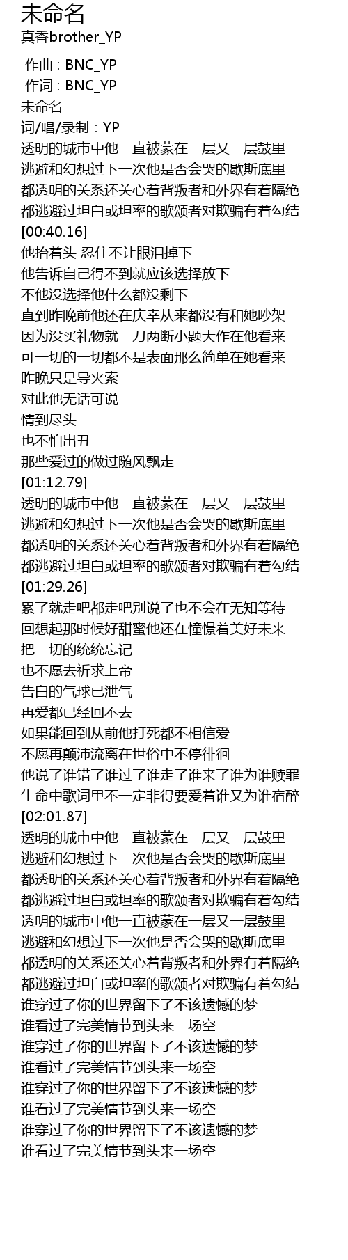 | [00:01.000] | 作词 : BNC_YP |