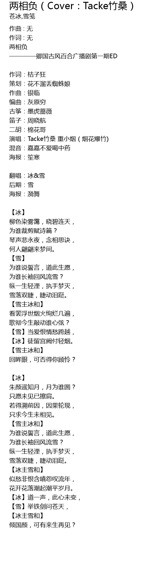 | 演唱:Tacke竹桑 重小烟(烟花爆竹) | |