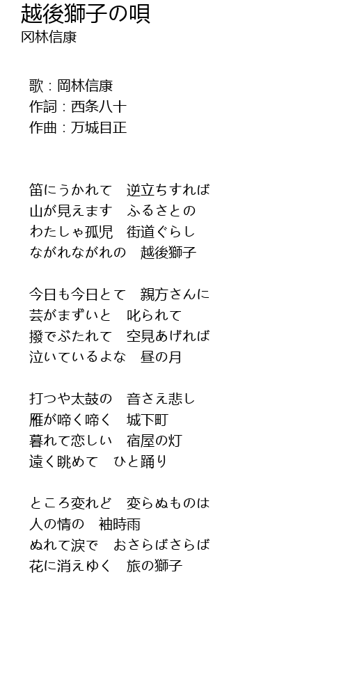 | Song | 越後獅子の唄 |