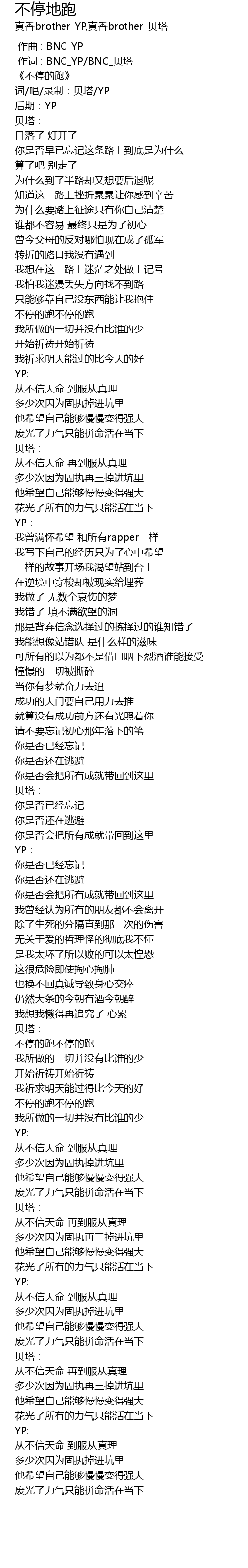 | [02:36.66] | bù tíng de pǎo bù tíng de pǎo |