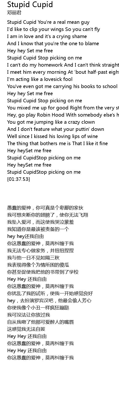 | [00:52.79] | Stupid Cupid Stop picking on me |