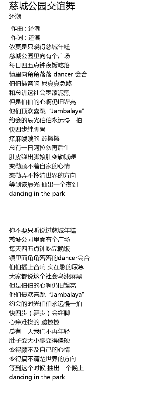 | Song | 慈城公园交谊舞 |