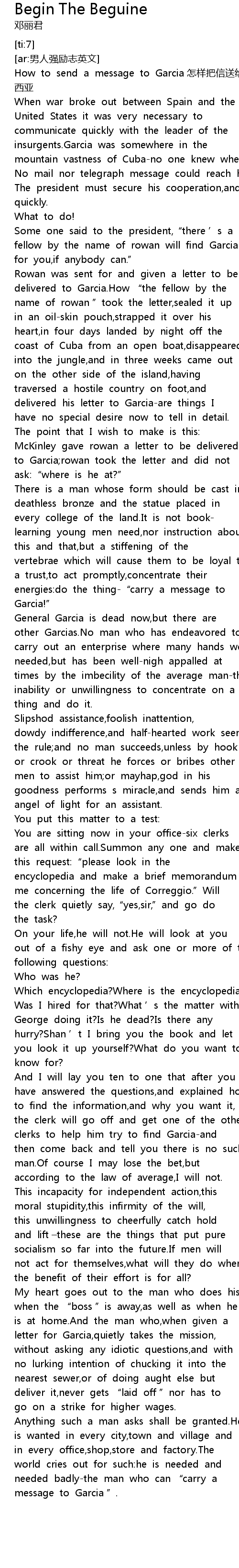 | [00:01.604] | How to send a message to Garcia 怎样把信送给加 |