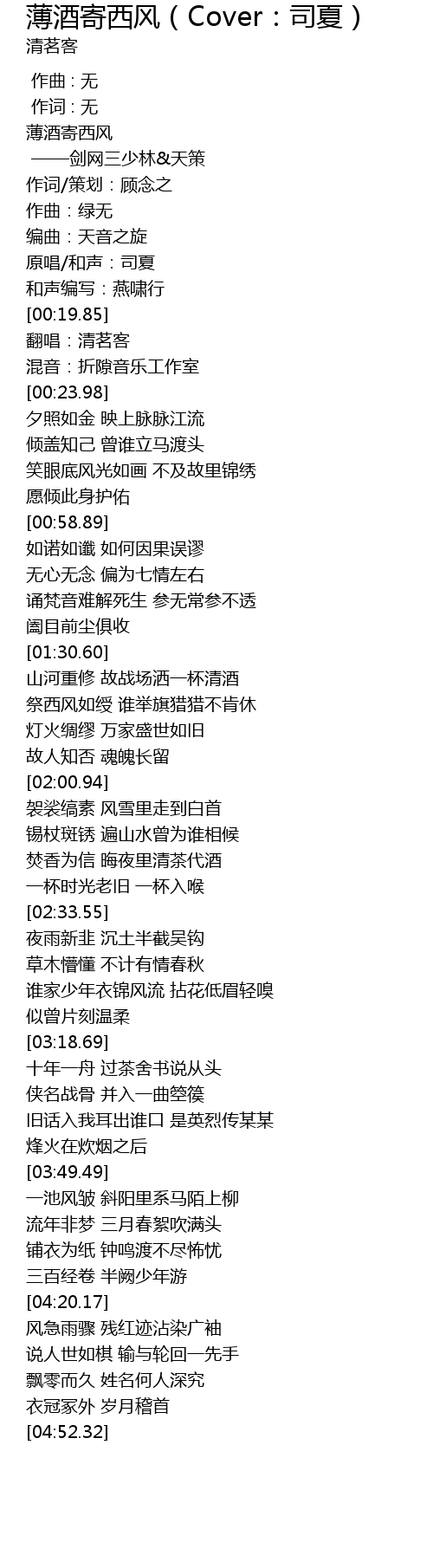 | [04:13.76] | 三百经卷 半阙少年游 |