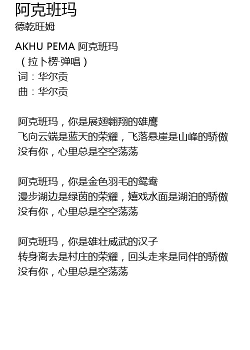 | 阿克班玛,你是金色羽毛的鸳鸯 | |