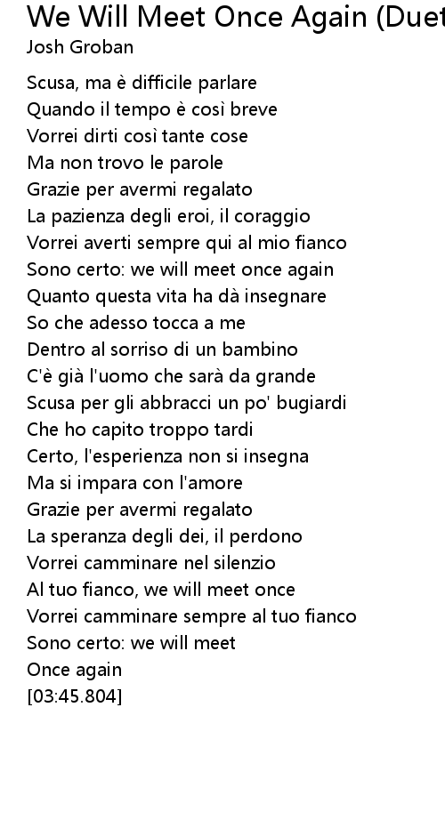 | [03:01.200] | Al tuo fianco, we will meet once |